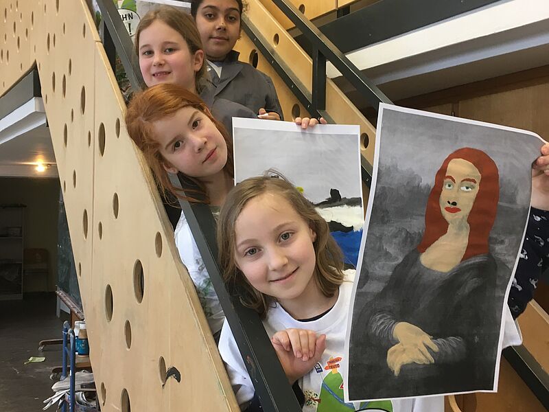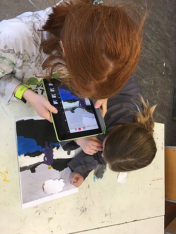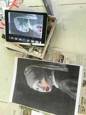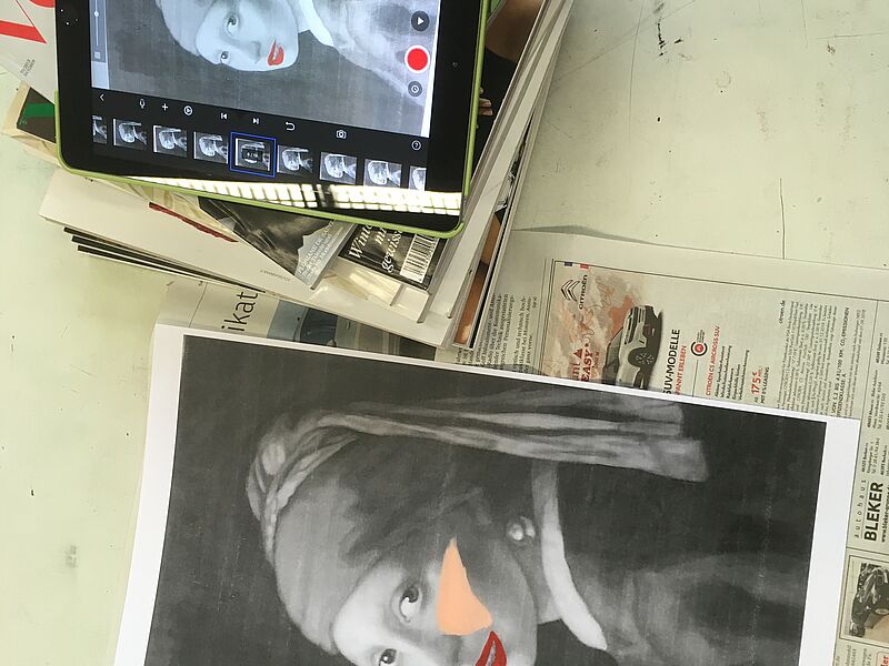"Wir drehen hier kurze Videos. Dabei verwenden wir Stop-Motion-Technik. Wir machen einzelne Bilder, die wir dann mit einem Programm zu einem Video zusammenfügen. Dazu gibt es unterschiedliche Möglichkeiten. Wir haben zum Beispiel einen Liebesfilm mit zwei Korken gedreht und mit Knete einen Baum wachsen lassen. An Weihnachten wurde aus einem großen Durcheinander aus Schulzeug ein schöner Weihnachtsstern, den wir als digitale Weihnachtskarte verschicken konnten. Im Moment lassen wir mit Tricktechnik berühmte Kunstwerke lebendig werden, zum Beispiel die Mona Lisa".
