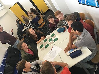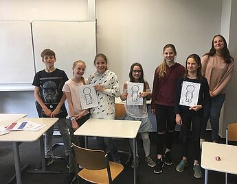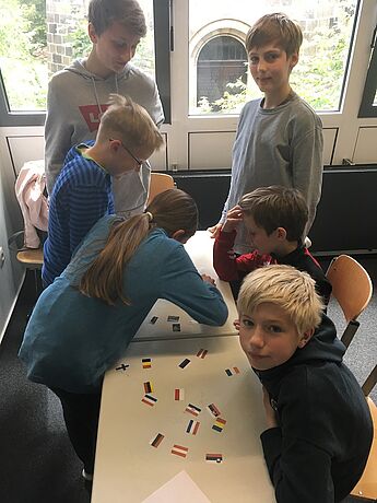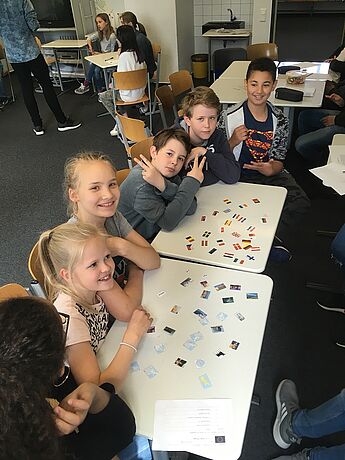 Das sind nur vier Beispiele für die insgesamt 11 Lernstationen, an denen die Schülerinnen und Schüler der Jahrgangsstufe 6 die Vielfalt Europas kennen lernen konnten, und zwar an unserem diesjährigen Europatag. Engagiert haben die Schülerinnen und Schüler der Europakurse (WPII; Klassen 8 und 9) einen vielfältigen Parcours für ihre jüngeren Mitschülerinnen und Mitschüler erstellt. Dieser reichte beispielsweise vom EU-Memory: Was gehört zusammen? über das Malen und Erraten von „typischen“ Charakteristika der einzelnen Länder bis hin zu verschiedenen Wissens- und Geschichtsquizspielen.