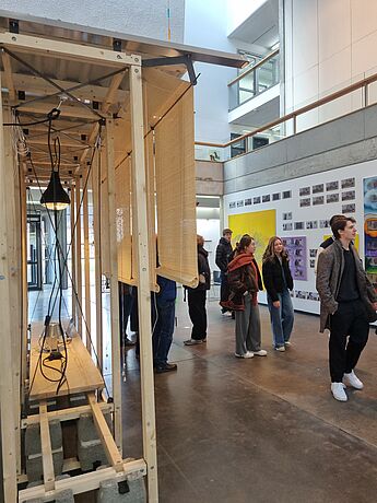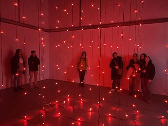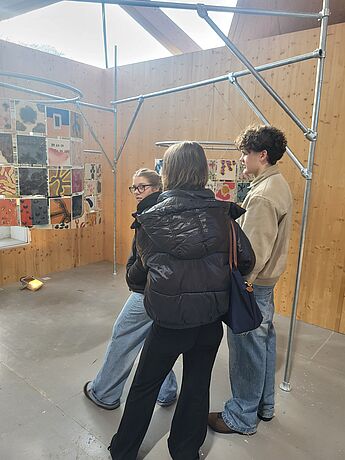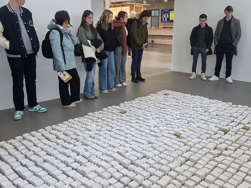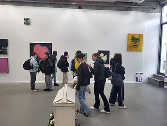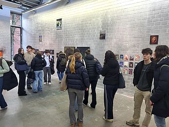 Der überlaute Herzschlag einer Installation und das laute Klopfen aus einem Topf, Teil einer anderen Arbeit, begrüßten zwei Grundkurse Kunst aus der Q2 von Frau Thomas und Frau Reinhart bei ihrem Besuch des Rundgangs der Kunstakademie Münster. Ungewöhnliche Arbeiten, unerwartete Materialien und Motive finden sich in den Klassen und Gängen. Studierende zeigten den Kursen in den weitläufigen Räumlichkeiten ausgewählte Werke, die Druckwerkstatt und brachten die Schülerinnen und Schüler mit anderen Studierenden ins Gespräch über die jeweils gezeigten Arbeiten.