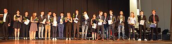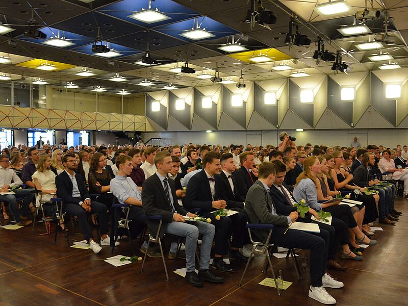Stolz nahmen 109 Abiturienten des Wilhelm-Hittorf-Gymnasiums in der Stadthalle Hiltrup nach einem Gottesdienst ihre Abschlusszeugnisse und Ehrungen entgegen. Es wurden acht „MINT“-Zertifikate, zwei Chemie-Ehrungen, neun Mitgliedschaften der Deutschen Physikalischen Gesellschaft, sowie jeweils eine Mitgliedschaft der Deutschen Philosophischen Gesellschaft und eine Auszeichnung durch das Pädagogische Institut der Evangelischen Kirche verliehen. Drei Schüler haben das Abitur mit der Note 1,0 abgeschlossen.