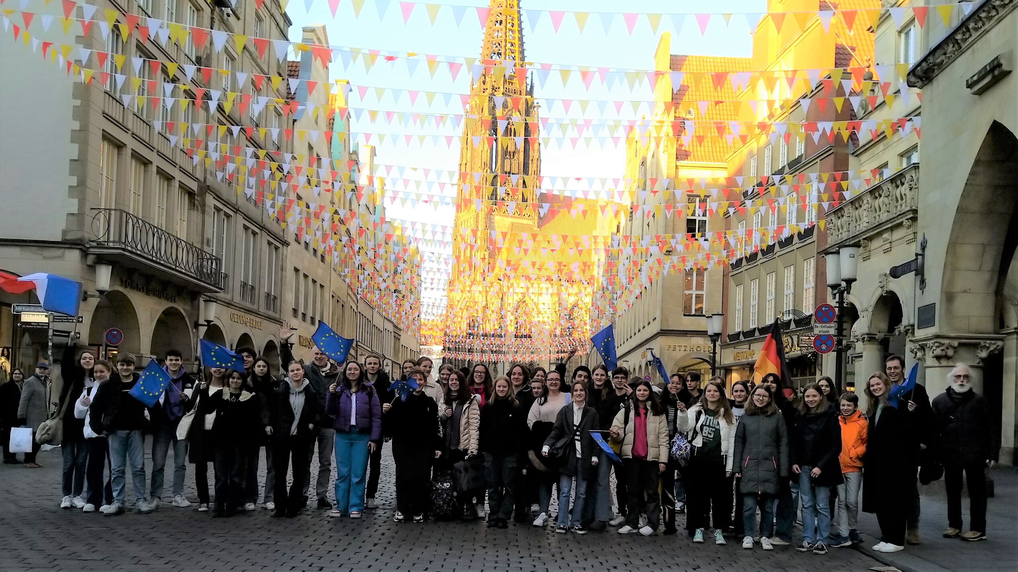 Auf Einladung der Stadt Münster (Büro für Internationales) haben wir uns 2019 in einem Konsortium von Münsteraner Europa-Schulen gemeinsam mit der Stadt auf den Weg gemacht, unsere ersten Erfahrungen mit Erasmus+ zu sammeln. Der Antrag wurde im Februar 2020 eingereicht, die Projektphase sollte bis zum Schuljahresende 2022 gehen, wurde aber aufgrund der Corona-Pandemie um ein Jahr verlängert. Nun blicken wir auf diese Projektphase zurück.