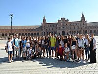 Im September besuchten 16 Schülerinnen und Schüler der Jahrgangstufen EF und Q1 ihre neue Partnerschule IES Ramón del Valle-Inclán in Sevilla. Nachdem die spanische Gäste bereits im Frühjahr in Münster zu Gast waren, konnten nun die Münsteraner ihre spanischen Gastschüler in ihrer andalusischen Heimat besuchen. Die Vorfreude war bei allen Beteiligten bereits vor Reiseantritt groß und schon der Empfang der Hittorfer in den spanischen Gastfamilien bei hochsommerlichen Temperaturen war überaus herzlich.
