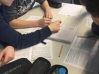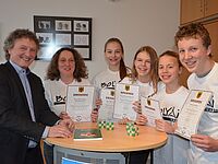 Sarah Glashörster, Nele Hoffmann, Birte Linder und Philipp Sapion aus der 9d belegten beim diesjährigen Bolyai-Wettbewerb einen 5. Platz. Damit behauptet sie sich innerhalb von 120 Teams aus Hessen und Nordrheinwestfalen in ihrer Altersklasse. Ihr Rezept für den Weg zum Erfolg: „Wir hatten sehr viel Spaß beim Lösen der Aufgaben.“