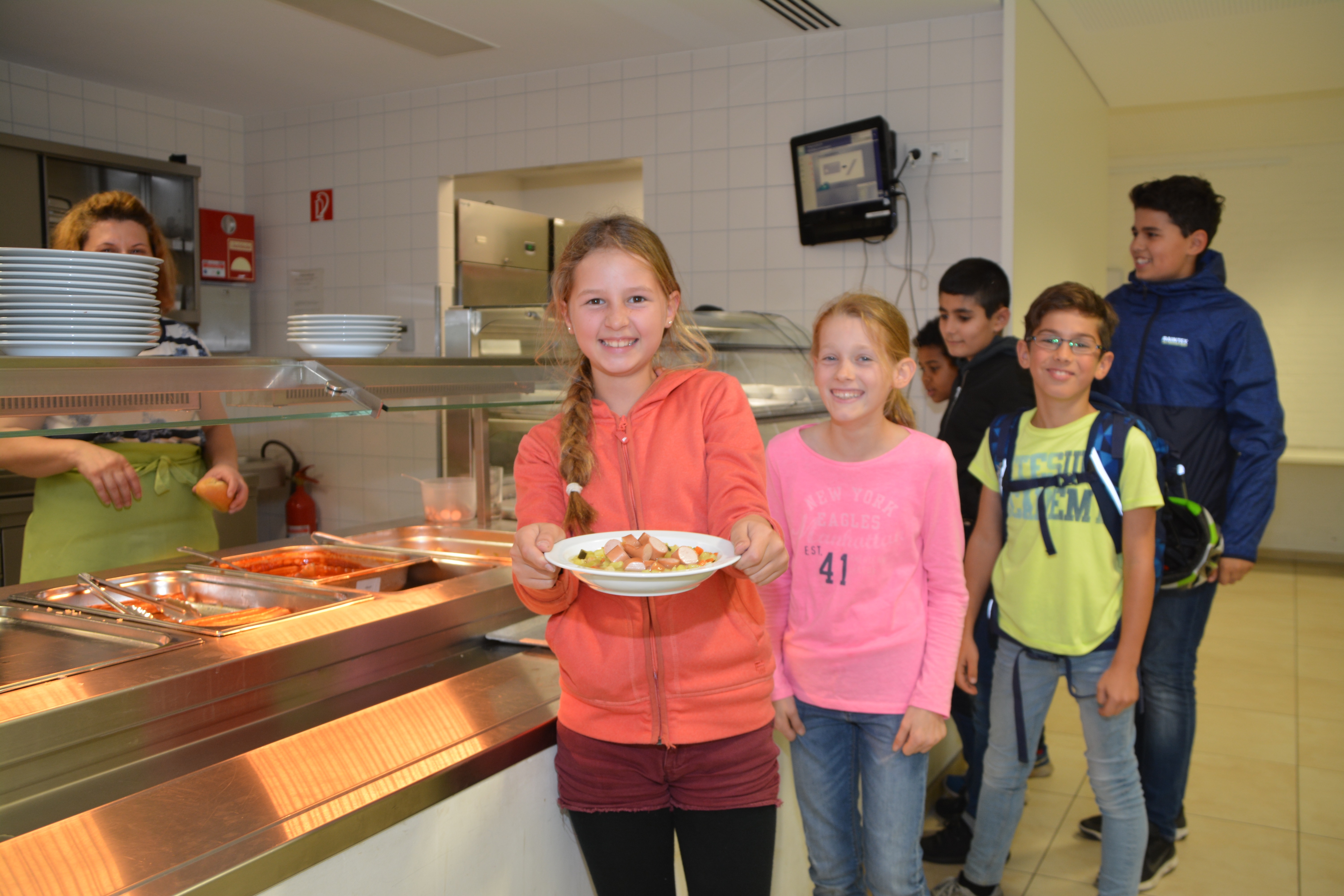 Eine Mensa-AG mit Vertretern der Eltern, Schülerinnen und Schüler, Lehrerinnen und Lehrer arbeitet im Gespräch mit dem Caterer an weiteren Optimierungsmöglichkeiten im Mensa- und Kioskbereich.